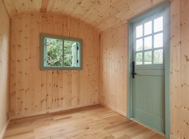 Tess is perfect for smaller gardens and is ideal as a garden office or a special place to get away from it all. There is room for a large sofa, double bed or chaise longue, plus a log burning stove and a table or desk too. The exterior can be clad in a thick treated timber, cedar, larch or Douglas fir that all turn a beautiful silver grey as they weather.