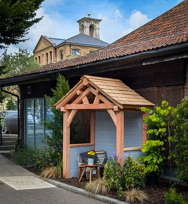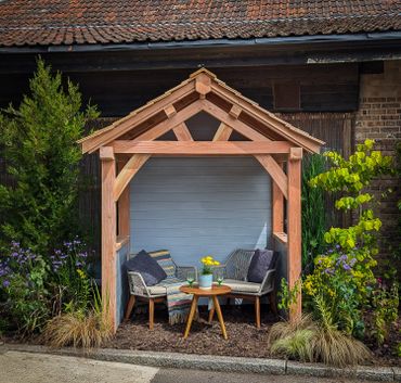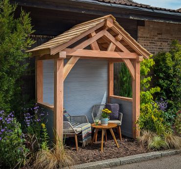 Available in Dorset grown larch or French oak, this design allows you to enjoy your garden no matter the size, no matter the weather! It can be an arbour as shown or adapted to be a front porch or lychgate.