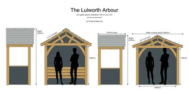 The larch version is on display at Poundbury Garden centre and the oak version is coming soon. The Lulworth arbour comes in two heights 2.73m and 2.4m and is also available as a full gazebo.