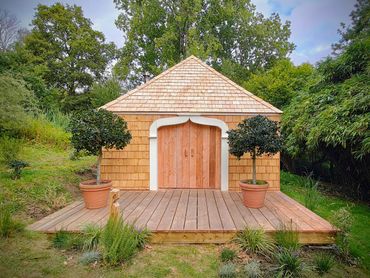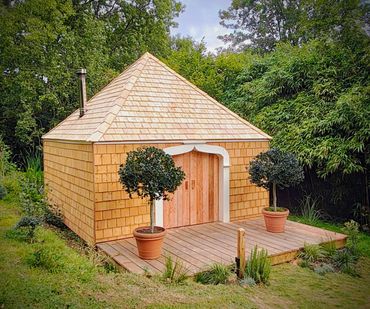 We like to keep things local and our cedar shingles, Douglas fir and larch are grown & milled in Dorset. This makes the Folly great for the environment as well as for us. The timbers and shingles will last well in excess of 25 years, turning a lovely silver-grey over the first year or so.