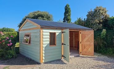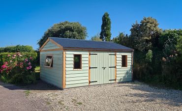 We have a range of lovely colours, please see our Build Options page for more details, and the Accessories page for shelving & workbenches etc.